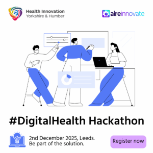 The hackathon will be held at Aire Innovate’s offices in Leeds on Tuesday 2nd December. Clinicians, digital transformation leads and academic subject matter experts are invited to come together to work as a community on challenges that matter most to the NHS in Yorkshire & Humber. The day aims to shape solutions and build working prototypes to address some of the key digital challenges in the region.